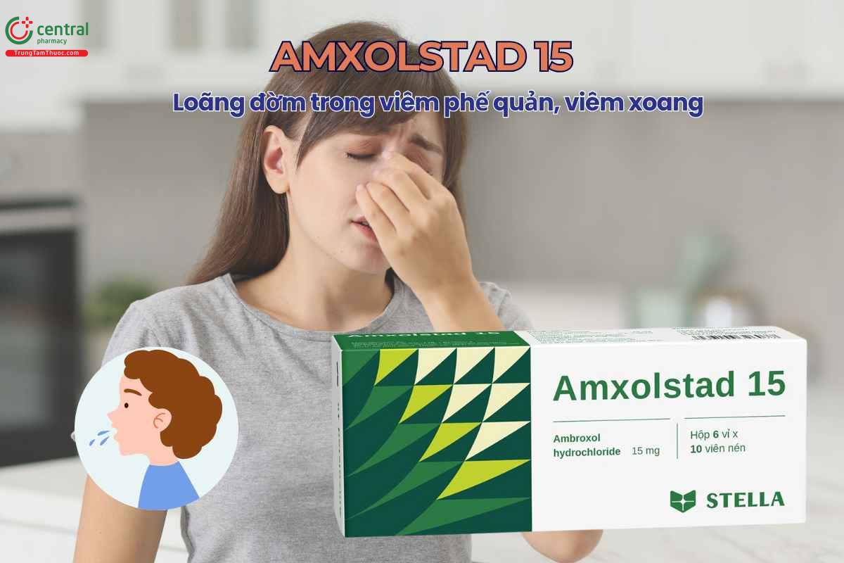 - Thuốc Amxolstad 15 có tác dụng làm loãng đờm đặc, giúp dễ loại bỏ đờm ra khỏi hệ thống hô hấp.