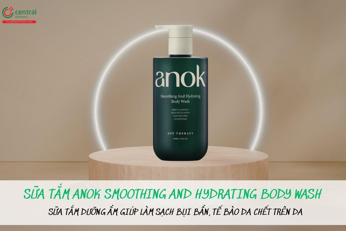 Sữa tắm Anok Smoothing And Hydrating Body Wash là sản phẩm làm sạch da toàn thân dạng sữa, dung tích 300ml, do Kolmar UX Co., Ltd, Hàn Quốc sản xuất. Công thức kết hợp các chất làm sạch cùng thành phần giữ ẩm và dưỡng bề mặt da, giúp làm sạch bụi bẩn, hỗ trợ loại bỏ tế bào sừng cũ, đồng thời giúp da mềm mại và bớt khô căng sau khi tắm.