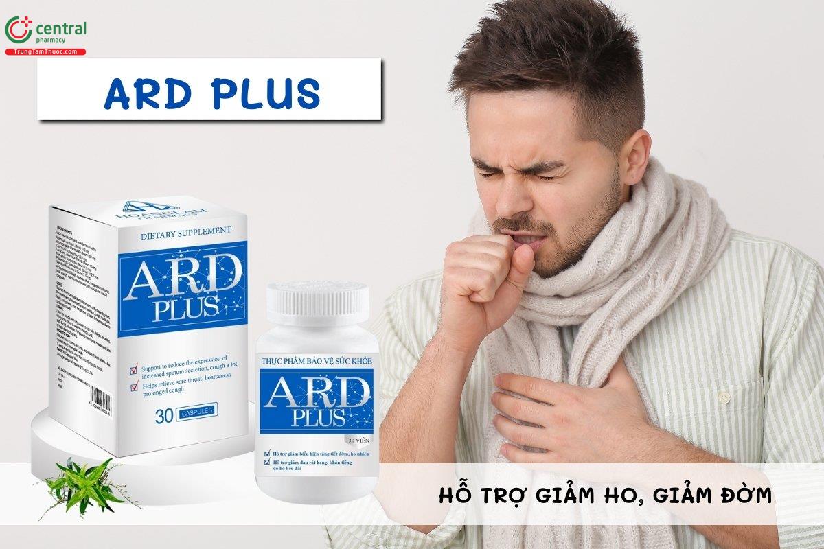 - Ard Plus chứa các thảo dược tự nhiên như thanh hao hoa vàng, xuyên tâm liên, nghệ… giúp hỗ trợ điều trị ho và đau họng an toàn.