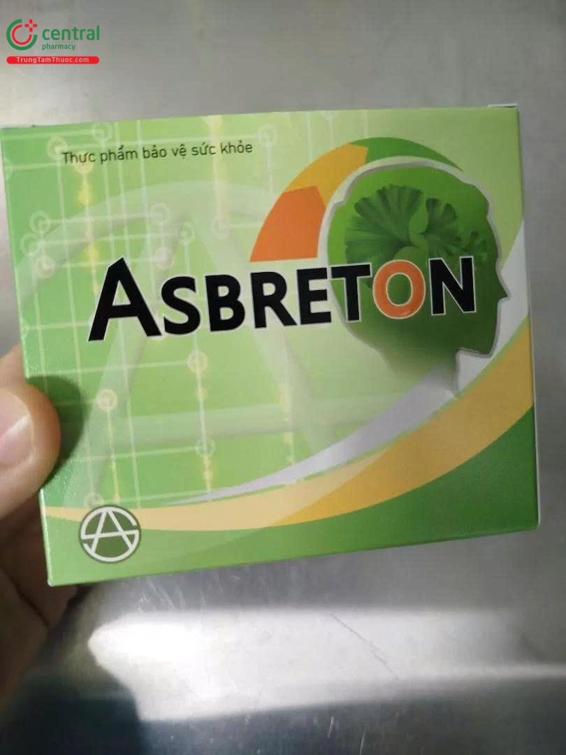 Asbreton chứa chiết xuất từ rễ đinh lăng, lá bạch quả, có tác dụng hỗ trợ hoạt huyết, thúc đẩy tuần hoàn máu não, hỗ trợ giảm các triệu chứng: đầu choáng váng, đau nhức, ù tai, suy giảm trí nhớ do suy tuần hoàn máu não.