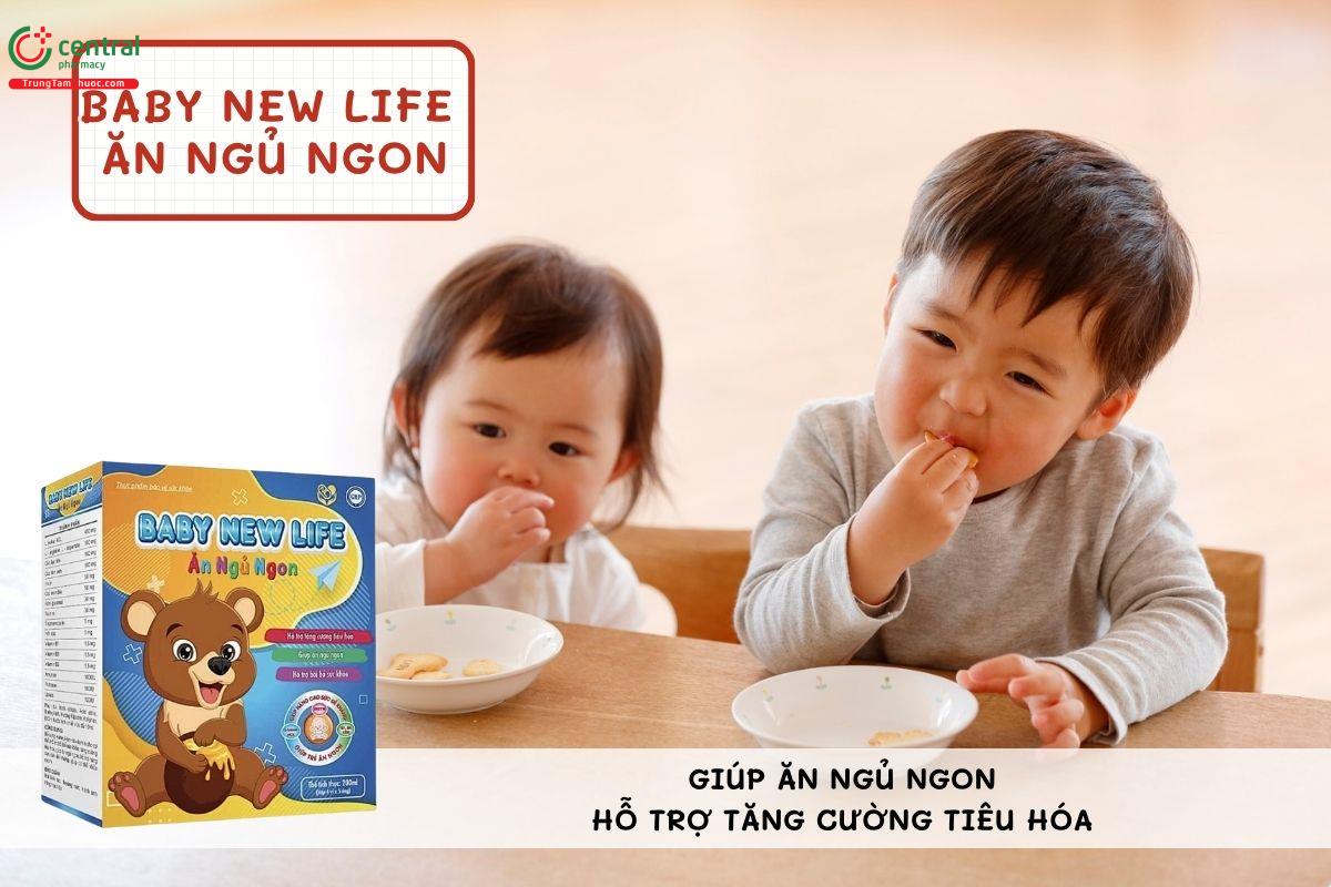 - Baby New Life Ăn Ngủ Ngon giúp hỗ trợ ngủ ngon, cải thiện hệ tiêu hoá của bé, đặc biệt đối với những trẻ biếng ăn hoặc tiêu hoá kém.