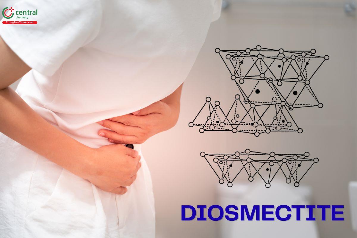 Diosmectit là một loại silicat nhôm-magnesi tự nhiên, có cấu trúc lớp mỏng, cấu tạo bởi nhiều lớp xếp song song và độ quánh cao, giúp bao phủ và bảo vệ niêm mạc đường tiêu hóa. Nó tương tác với glycoprotein trong niêm dịch, tăng cường tác dụng bảo vệ lớp niêm mạc khi bị tác nhân xâm hại. Diosmectit có khả năng bám dính và hấp phụ tốt, tạo hàng rào bảo vệ niêm mạc, đồng thời gắn kết với độc tố vi khuẩn trong ruột.