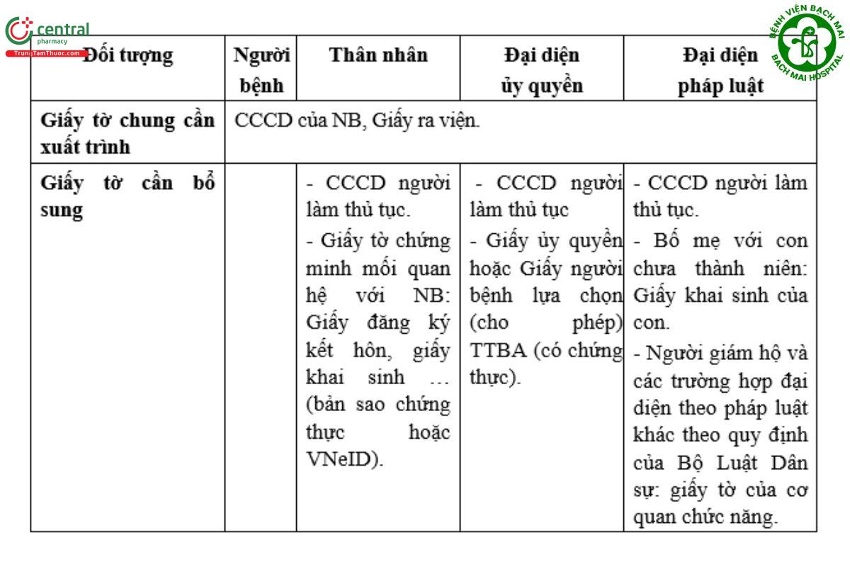 - 3. Đại diện theo ủy quyền hoặc người được người bệnh lựa chọn.