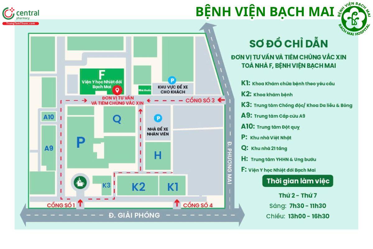 | Liên hệ | Tổng đài: 1900.888.866 Hotline: 096.985.1616 Website: https://bachmai.gov.vn/ Facebook: Bệnh viện Bạch Mai https://www.facebook.com/benhvienbachmai1911/ Youtube: Bệnh Viện Bạch Mai https://www.youtube.com/c/BệnhViệnBạchMai1911 |