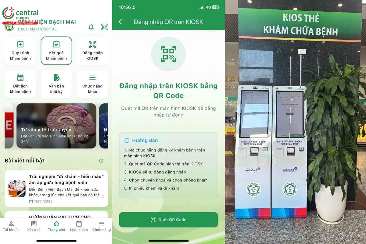 - Nếu muốn chọn bác sĩ tái khám, hãy đặt lịch trước trên App Bạch Mai Care. Kiosk ưu tiên chọn chuyên khoa và phòng khám nhanh chóng.