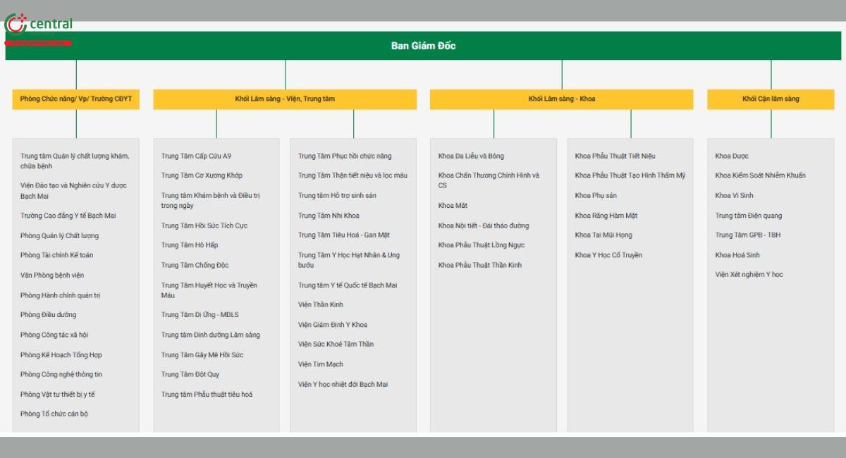 Bệnh viện Bạch Mai có những khoa nào? Dưới đây là sơ đồ tổ chức của bệnh viện?