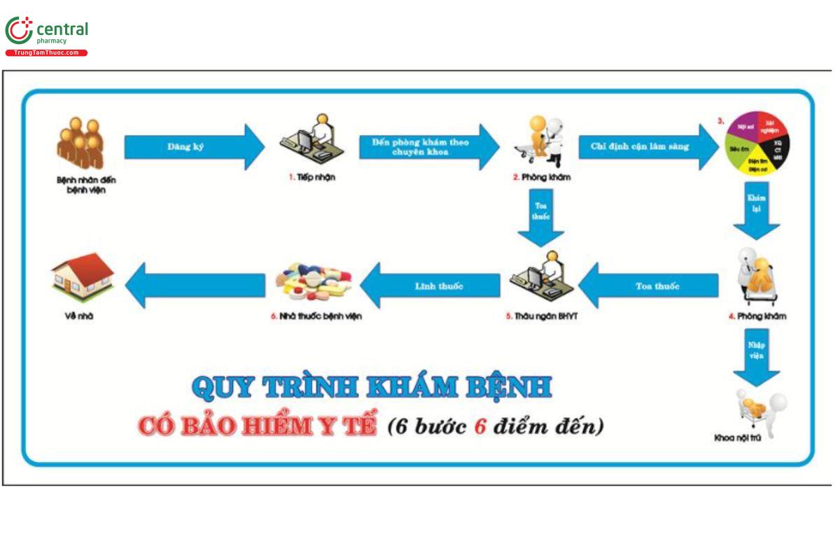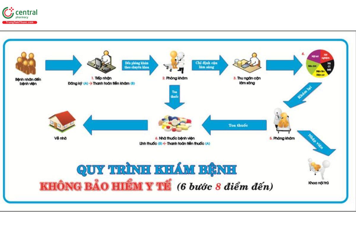 - Nhận thuốc hoặc nhập viện: Bệnh nhân lĩnh thuốc tại nhà thuốc bệnh viện hoặc được hướng dẫn nhập khoa nội trú để điều trị tiếp.