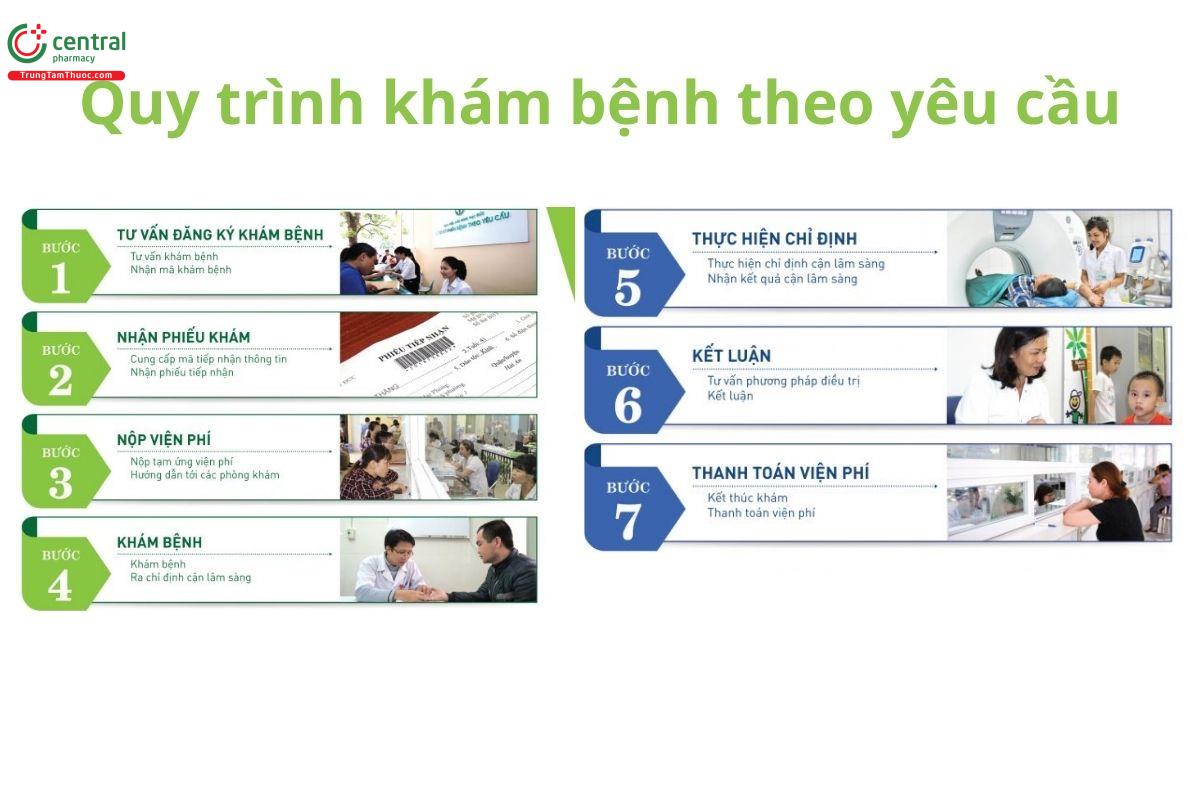 Bước 1: Tư vấn và đăng ký khám: Nhân viên hướng dẫn người bệnh làm thủ tục đăng ký khám. Cung cấp thông tin cần thiết và cấp mã khám bệnh.