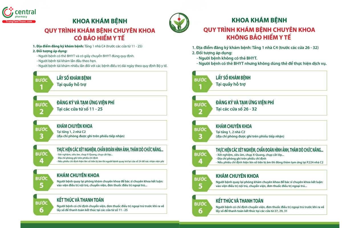 Bước 3: Khám chuyên khoa: Tiến hành khám tại tầng 1 và 2, nhà C2 (phòng cụ thể được ghi trên phiếu tiếp nhận).