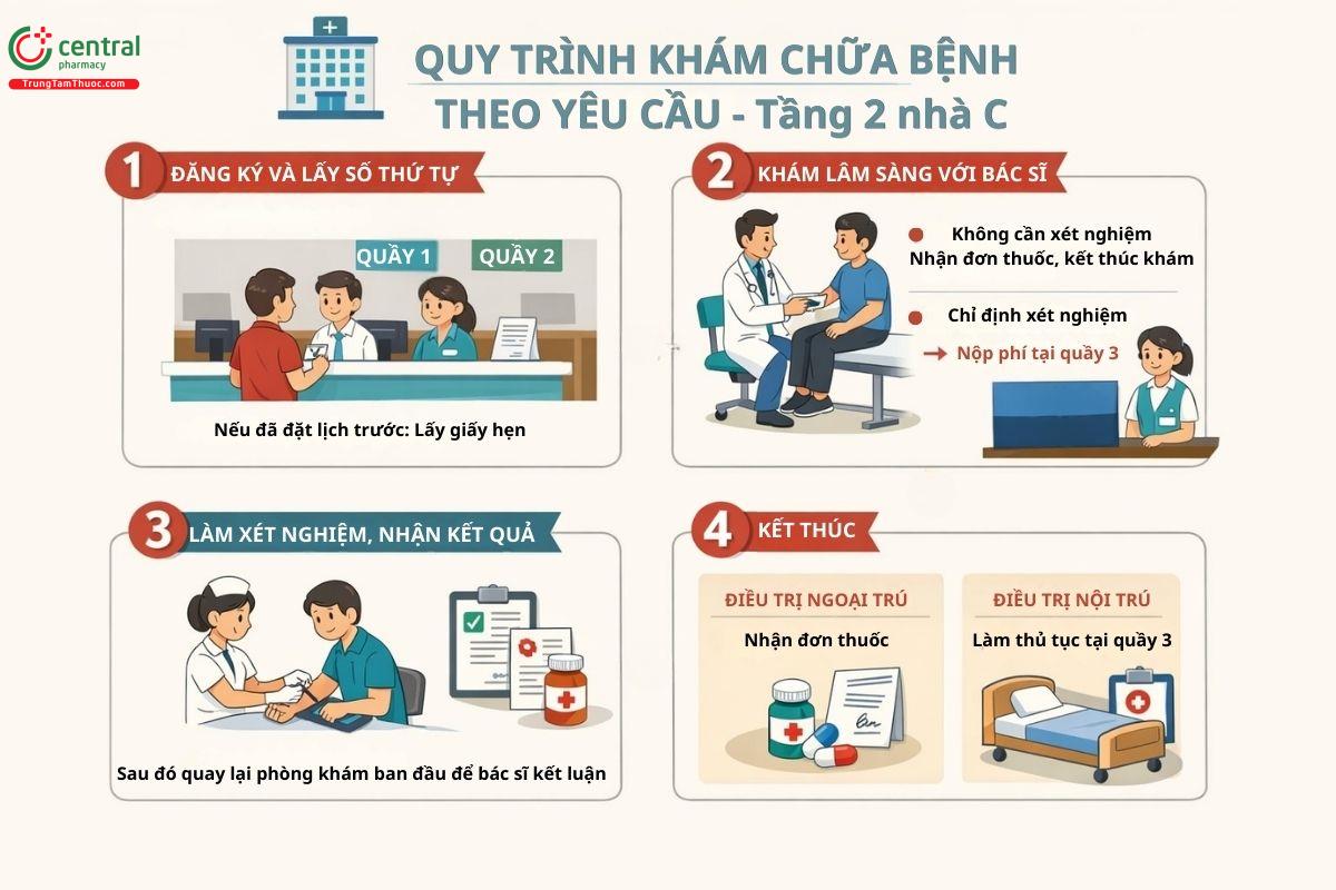 - Địa điểm: Trung tâm Khám chữa bệnh theo yêu cầu và Quốc tế - Tầng 2, Nhà C
