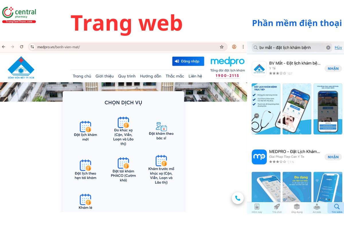 Truy cập và trang web bệnh viên hoặc tải app "BV Mắt - Đặt lịch khám bệnh" trên trên AppStore (IOS) hoặc CH play (Android).