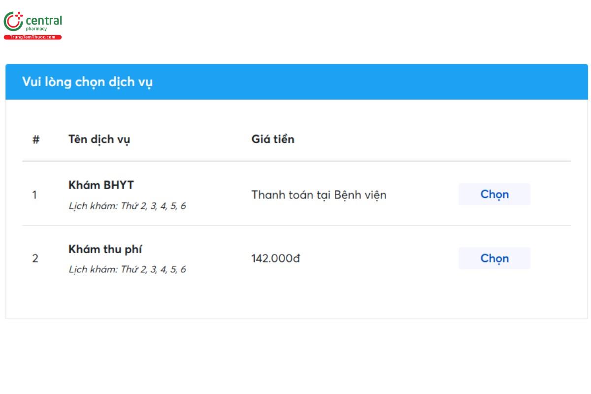 Lưu ý: Tổng số tiền cần thanh toán sẽ bao gồm: phí khám bệnh theo quy định của bệnh viện và phí tiện ích (10.000 đồng, chưa bao gồm VAT và phí xử lý giao dịch).
