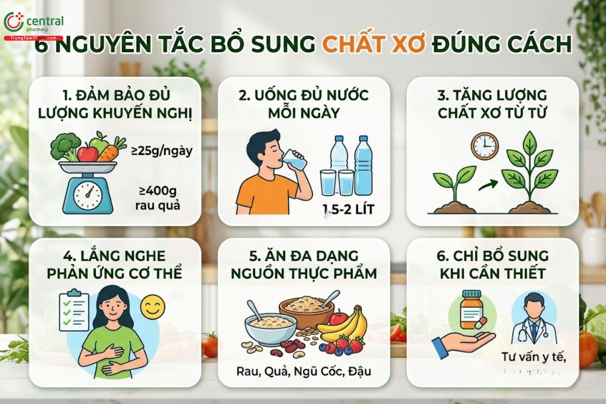 Dưới đây là các nguyên tắc bổ sung chất xơ đúng cách: