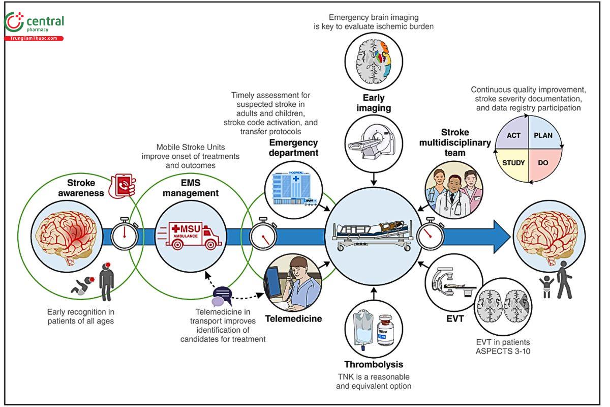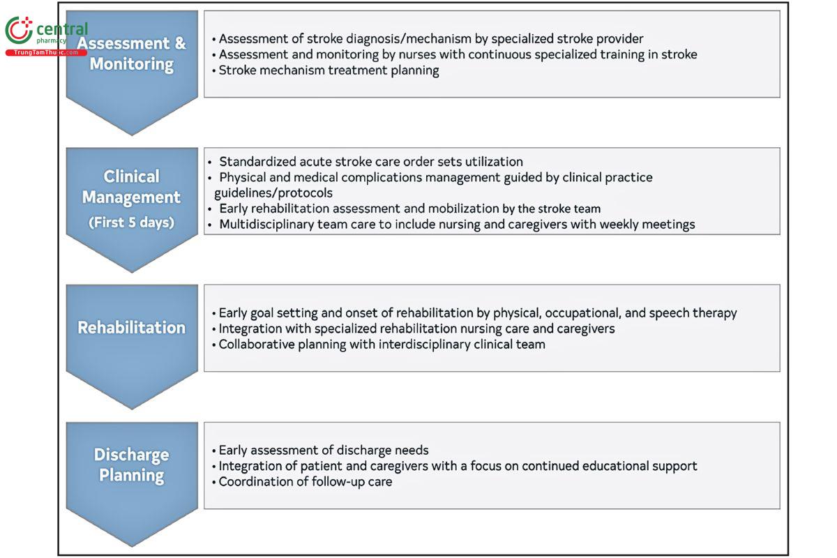 - Nhấn mạnh hệ thống điều trị và Đơn vị đột quỵ (stroke unit).