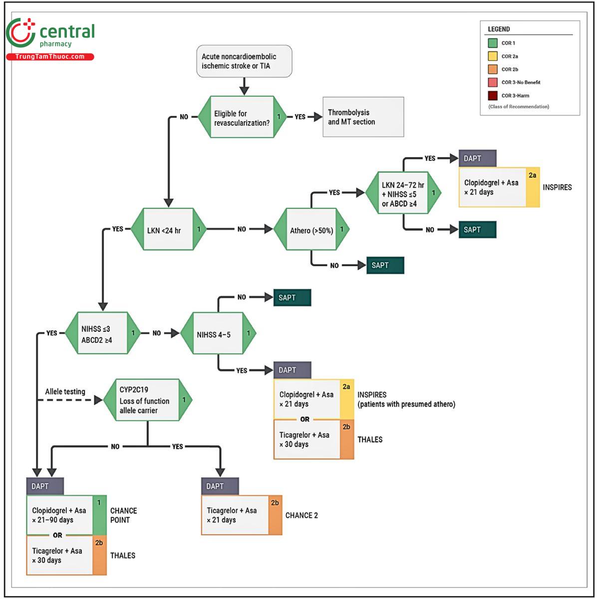 Ở Cơn thiếu máu não thoáng qua (TIA) nguy cơ cao hoặc đột quỵ nhẹ: Liệu pháp kháng tiểu cầu kép DAPT (aspirin + Clopidogrel) ngắn hạn được khuyến cáo