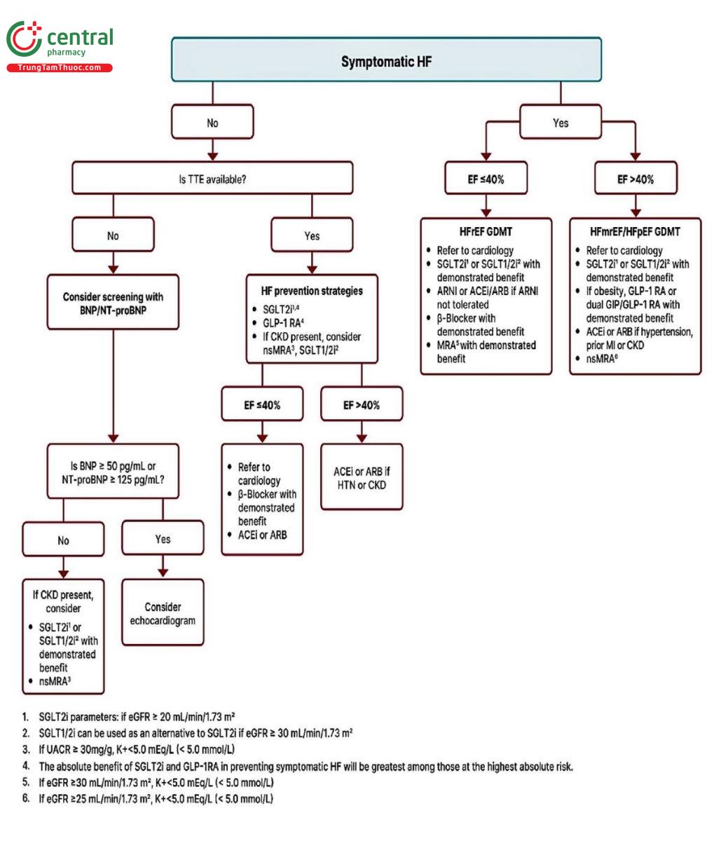 10.44c. Ở người đái tháo đường type 2 + suy tim giai đoạn B hoặc nguy cơ cao bệnh tim mạch, để giảm nguy cơ nhập viện vì suy tim, khuyến cáo dùng: