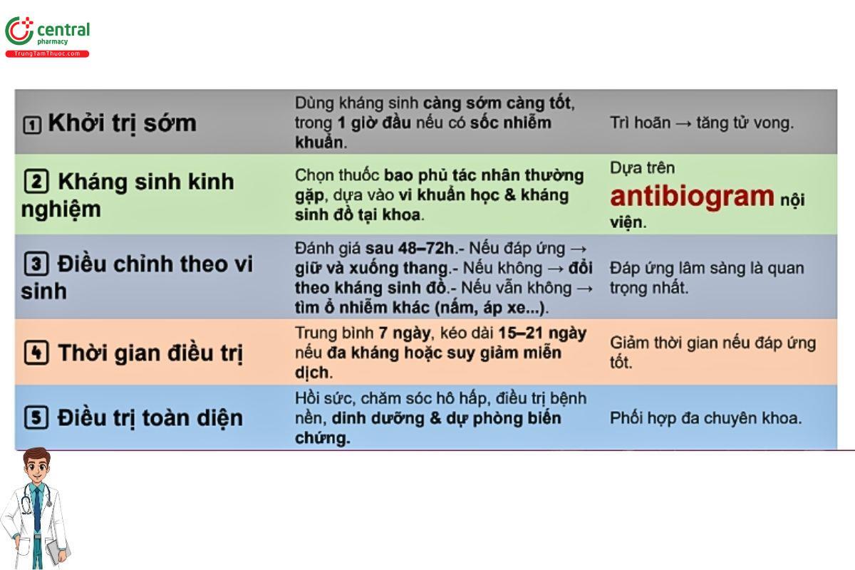 - Lựa chọn kháng sinh kinh nghiệm phải dựa vào dữ liệu vi sinh của cơ sở điều trị (antibiogram)