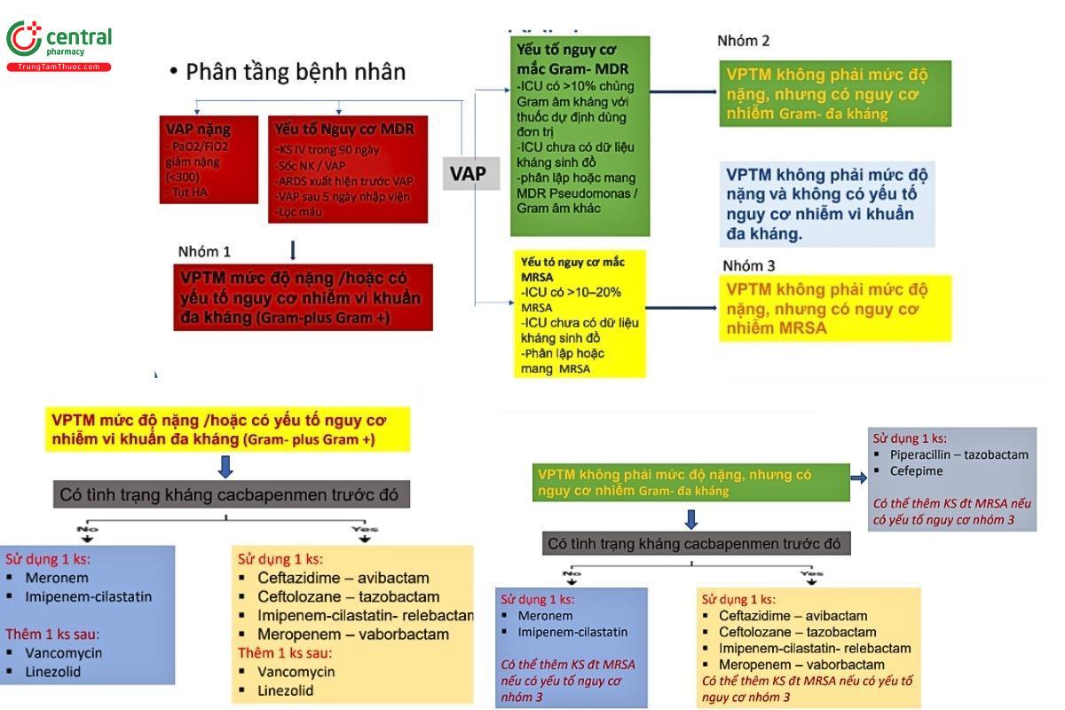 - Bao phủ được các tác nhân có khả năng gây bệnh (ưu tiên vi khuẩn gram âm Klebsiella pneumonia, E.Coli, Acinobacter sp, P.aeruginosa)