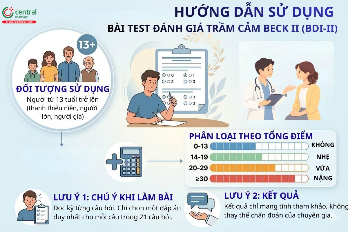 2 Hướng dẫn thực hiện Bài test đánh giá mức độ trầm cảm BECK II (BDI-II)