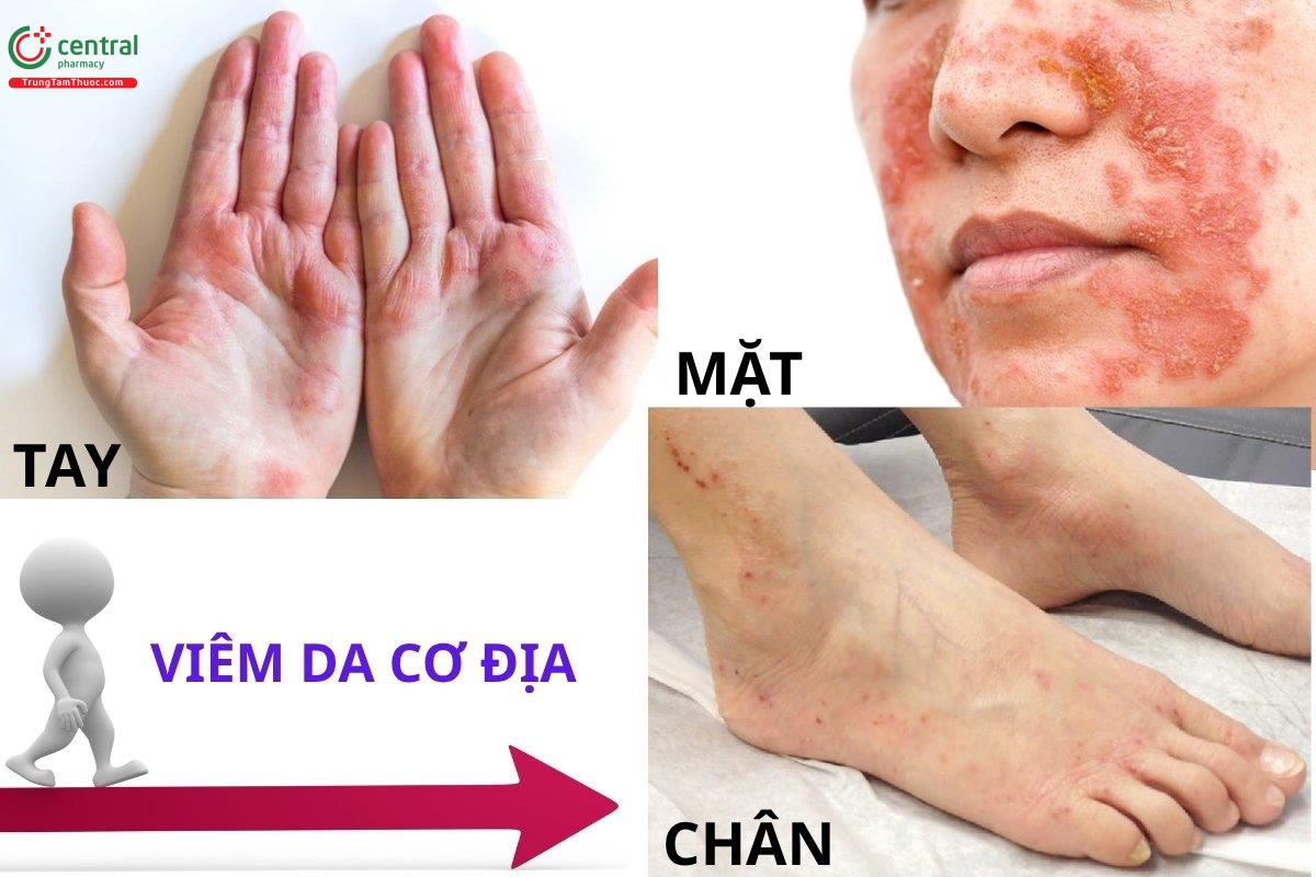 - Viêm cấp tính: Ban đỏ, phù nề, ngứa dữ dội hoặc nổi mụn nước, nóng rát, khô da.
