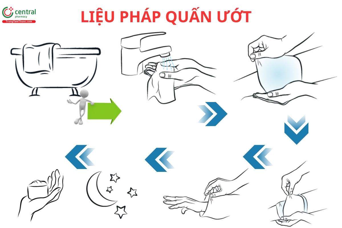 - Bước 3: Quấn băng ẩm quanh vùng da bị viêm da dị ứng.
