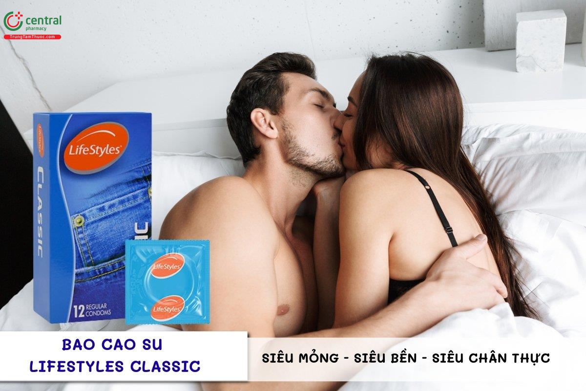 - Bao cao su LifeStyles Classic siêu mỏng với thành phần cao su tự nhiên an toàn, chứa nhiều gel bôi trơn giúp hoạt động trơn tru hơn.