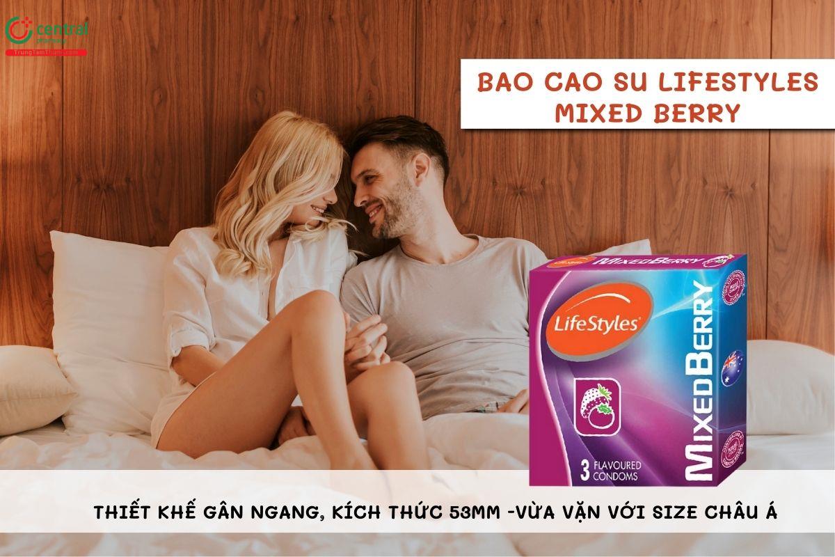 Bao cao su LifeStyles Mixed Berry là thương hiệu bao cao su đến từ Úc. Trong thành phần có thêm hương dâu tự nhiên (Vị dâu, vị phúc bồn tử, vị việt quất) mang đến một làn gió mới, phù hợp với người thích cảm giác mới lạ.