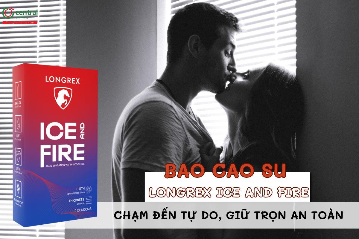 - Bao cao su Longrex Ice and Fire với kích thước siêu mỏng, gấp 3 lần gel bôi trơn so với loại bình thường, cho cảm giác mát lạnh, ấm nóng giúp mang đến trải nghiệm chân thực.