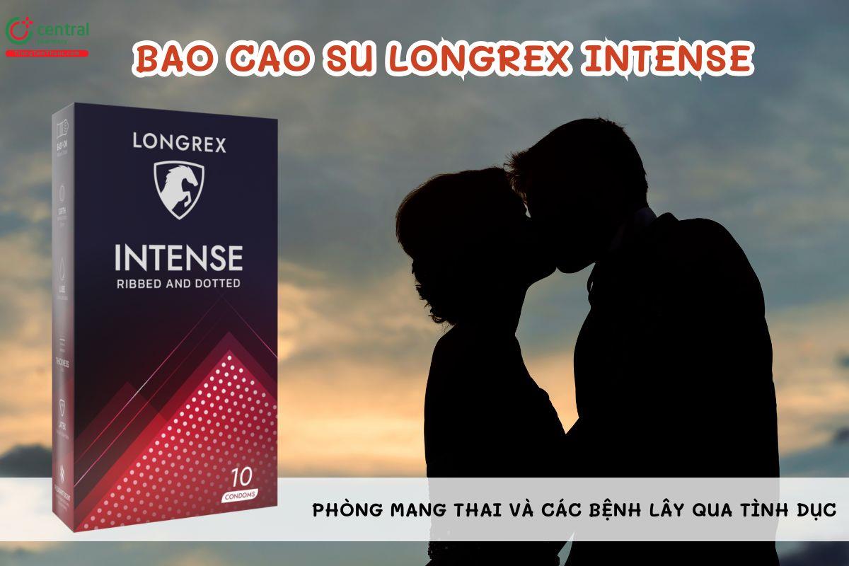- Bao cao su gân gai Longrex Intense giúp phòng ngừa mang thai và các bệnh xã hội lây qua đường tình dục.