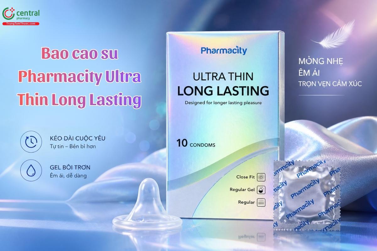 Bao cao su Pharmacity Ultra Thin Long Lasting (Hộp 10 chiếc)