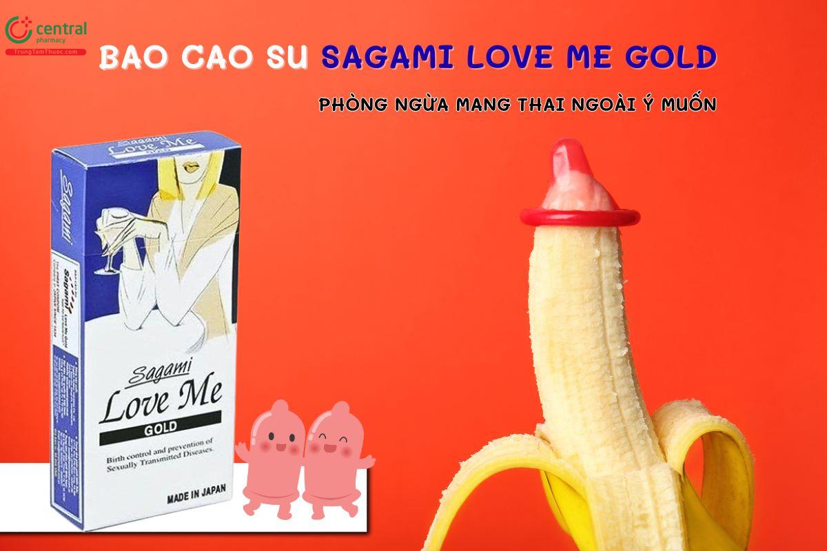 - Bao cao su Sagami Love Me Gold có công dụng phòng ngừa mang thai và giảm nguy cơ mắc bệnh lây qua đường tình dục như HIV, lậu, giang mai, viêm gan B,...