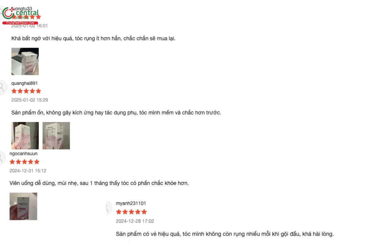 - Sản phẩm chủ yếu bổ sung dưỡng chất hỗ trợ, không thay thế cho các phương pháp điều trị y khoa đối với các bệnh lý gây rụng tóc nghiêm trọng.