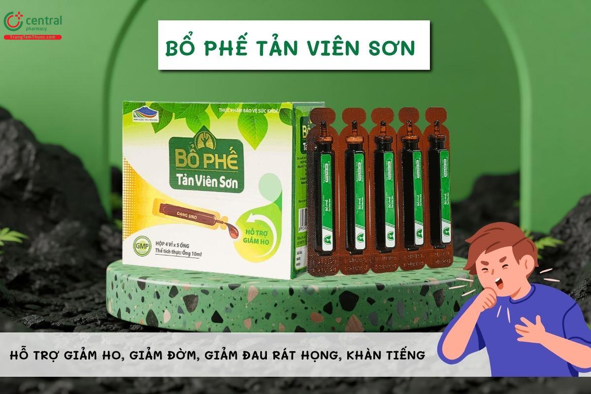 Bổ Phế Tản Viên Sơn là sự kết hợp hoàn hảo của loại dược liệu bổ phế, có tác dụng hỗ trợ giảm ho, giảm đờm, giảm đau rát họng, khản tiếng do viêm họng, viêm phế quản.