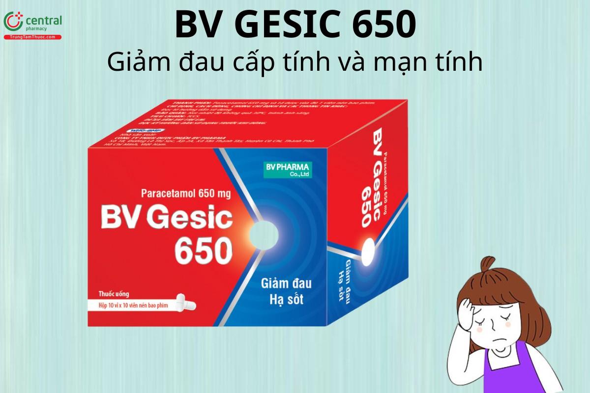 BV Gesic 650 được chỉ định để làm giảm các triệu chứng đau và sốt từ nhẹ đến trung bình, bao gồm: