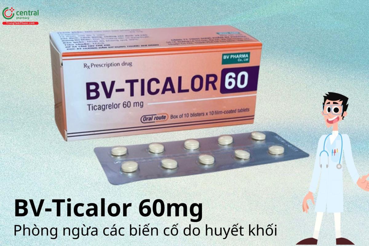 BV-Ticalor 60mg được chỉ định cho người trưởng thành đã mắc hội chứng mạch vành cấp (ACS) hoặc có tiền sử nhồi máu cơ tim (MI) kèm theo nguy cơ cao bị biến cố huyết khối. Trong các trường hợp này, thuốc được dùng phối hợp với Acid Acetylsalicylic (ASA) để ngăn ngừa các biến cố huyết khối do xơ vữa động mạch.[1] ==>> Bạn đọc có thể tham khảo thêm thuốc: Thuốc Brilinta 60mg phòng ngừa biến cố huyết khối