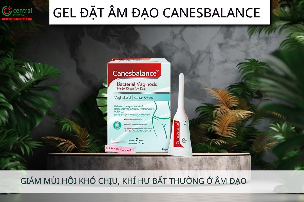 Gel đặt âm đạo Canesbalance được thiết kế nhằm hỗ trợ tái lập môi trường acid sinh lý tại âm đạo, từ đó góp phần cải thiện những biểu hiện thường gặp khi mất cân bằng hệ vi sinh như mùi hôi khó chịu, khí hư bất thường, cảm giác khó chịu ở vùng kín và nhiễm khuẩn âm đạo (BV).