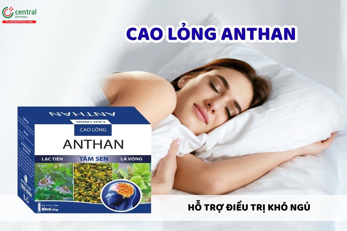 Cao lỏng ANTHAN hỗ trợ cải thiện tình trạng khó ngủ và ngủ không liền giấc, phù hợp ở người dễ thức giấc về đêm hoặc ngủ dậy vẫn mệt. Sản phẩm đồng thời hỗ trợ giảm cảm giác hồi hộp, bồn chồn, lo lắng về đêm ở người căng thẳng thần kinh. Với nhóm người lớn tuổi hoặc người suy nhược do ngủ kém, Cao lỏng ANTHAN có thể hỗ trợ ổn định trạng thái tinh thần và giảm tình trạng hay quên.