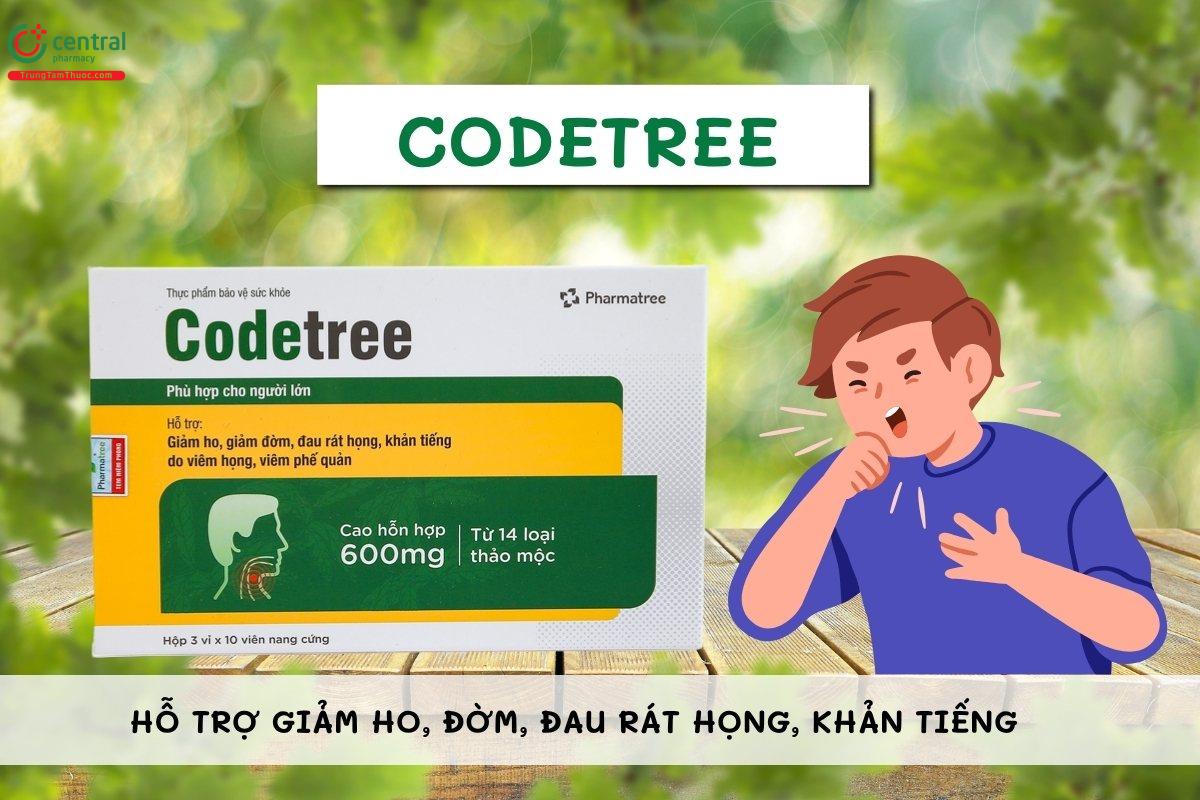 - Codetree được chiết xuất từ các thảo mộc tự nhiên, giúp hỗ trợ giảm ho, loãng đờm và hỗ trợ bảo vệ cổ họng.