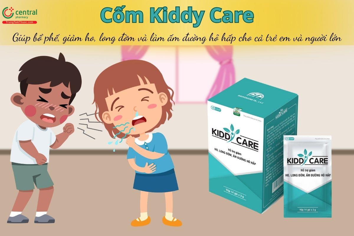 Cốm Kiddy Care giúp tăng cường chức năng phổi, giảm ho, làm loãng đờm và giữ ấm đường hô hấp.