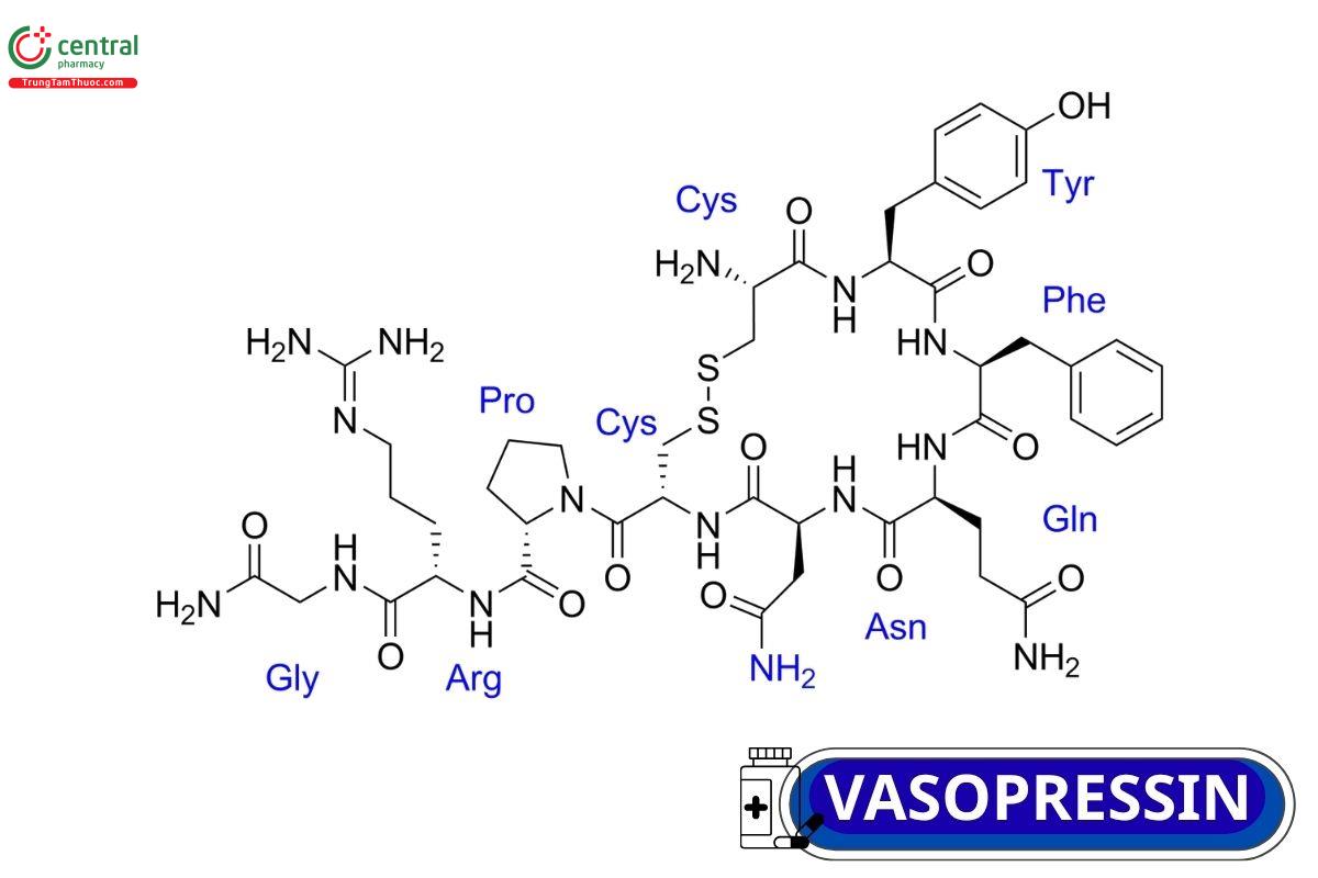 Vasopressin gây co mạch thông qua gắn với thụ thể V1 trên cơ trơn mạch máu, hoạt hóa con đường Gq/11 - phospholipase C - IP3, từ đó làm tăng giải phóng calci nội bào. Đồng thời, hormon này còn có tác dụng chống bài niệu thông qua thụ thể V2, liên kết với hệ adenyl cyclase tại thận.