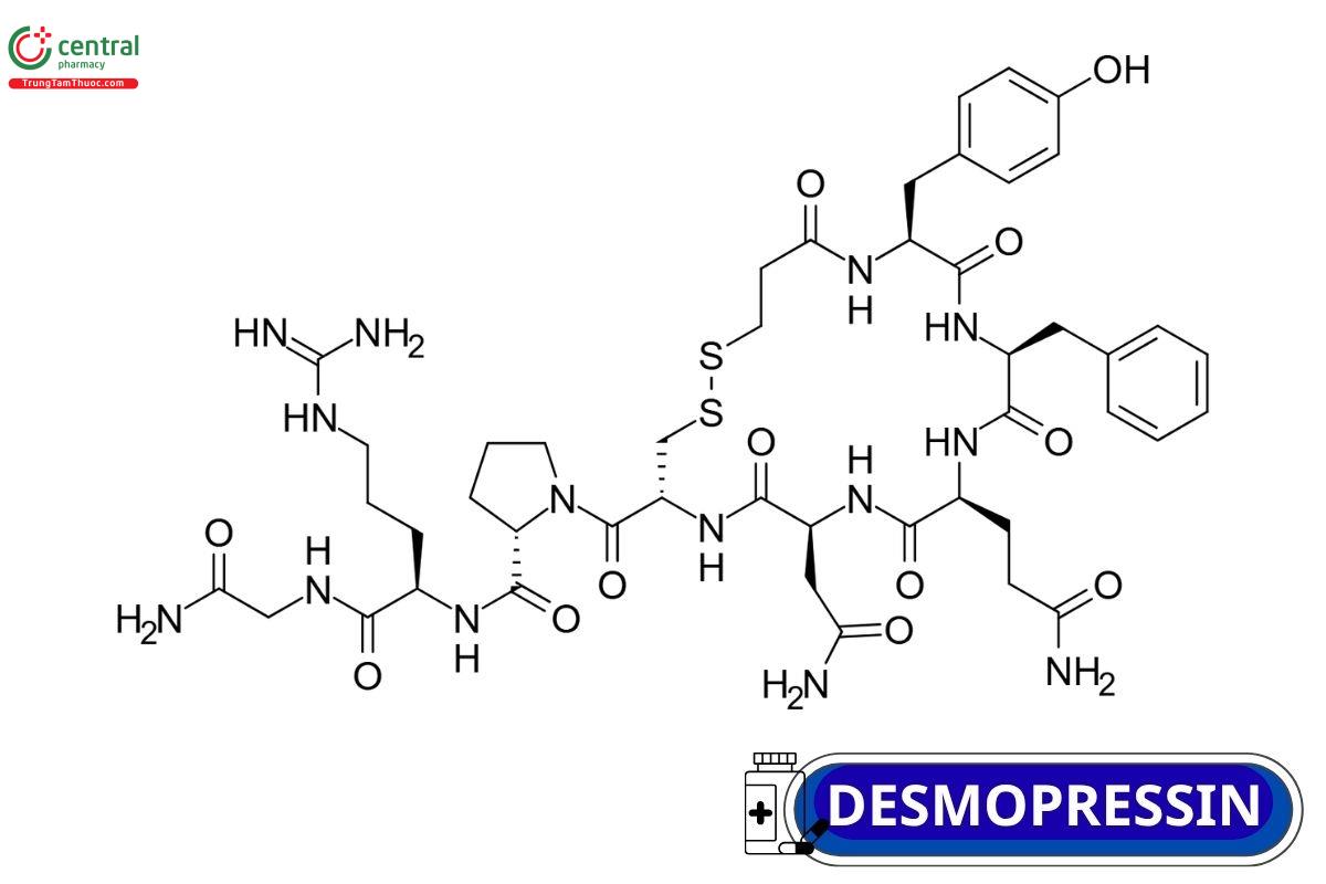 Desmopressin là một dẫn xuất của vasopressin với hai biến đổi cấu trúc gồm khử nhóm amin ở đầu N và thay thế L-arginin bằng D-arginin, giúp tăng hiệu quả chống bài niệu và kéo dài thời gian tác dụng với có chế tác dụng tương tự. So với hormon tự nhiên, hoạt tính gây co mạch của desmopressin giảm rất mạnh, gần như không đáng kể, vì vậy thuốc ít gây tác dụng phụ
