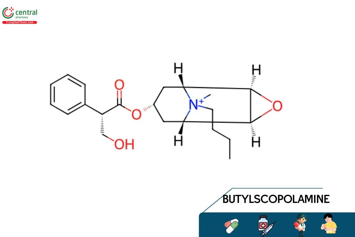 Butylscopolamin (Hyoscin butylbromid) là dẫn xuất bán tổng hợp của scopolamin thuộc nhóm amoni bậc bốn, có tác dụng kháng cholinergic ngoại biên và không ảnh hưởng lên hệ thần kinh trung ương do không qua được hàng rào máu não. Thuốc hoạt động bằng cách đối kháng thụ thể muscarinic, từ đó ngăn tác dụng của acetylcholin.