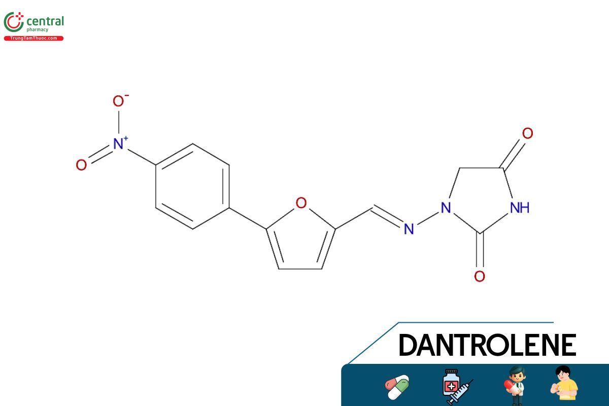 Dantrolen sodium là thuốc giãn cơ tác động trực tiếp lên cơ vân bằng cách ức chế giải phóng calci từ lưới cơ tương, từ đó làm giảm co cơ khi bị kích thích. Thuốc giúp giảm co cứng cơ ở bệnh nhân tổn thương nơron vận động trung ương và có hiệu quả trong ngăn ngừa dị hóa cấp trong tế bào cơ vân ở sốt cao ác tính do gây mê.