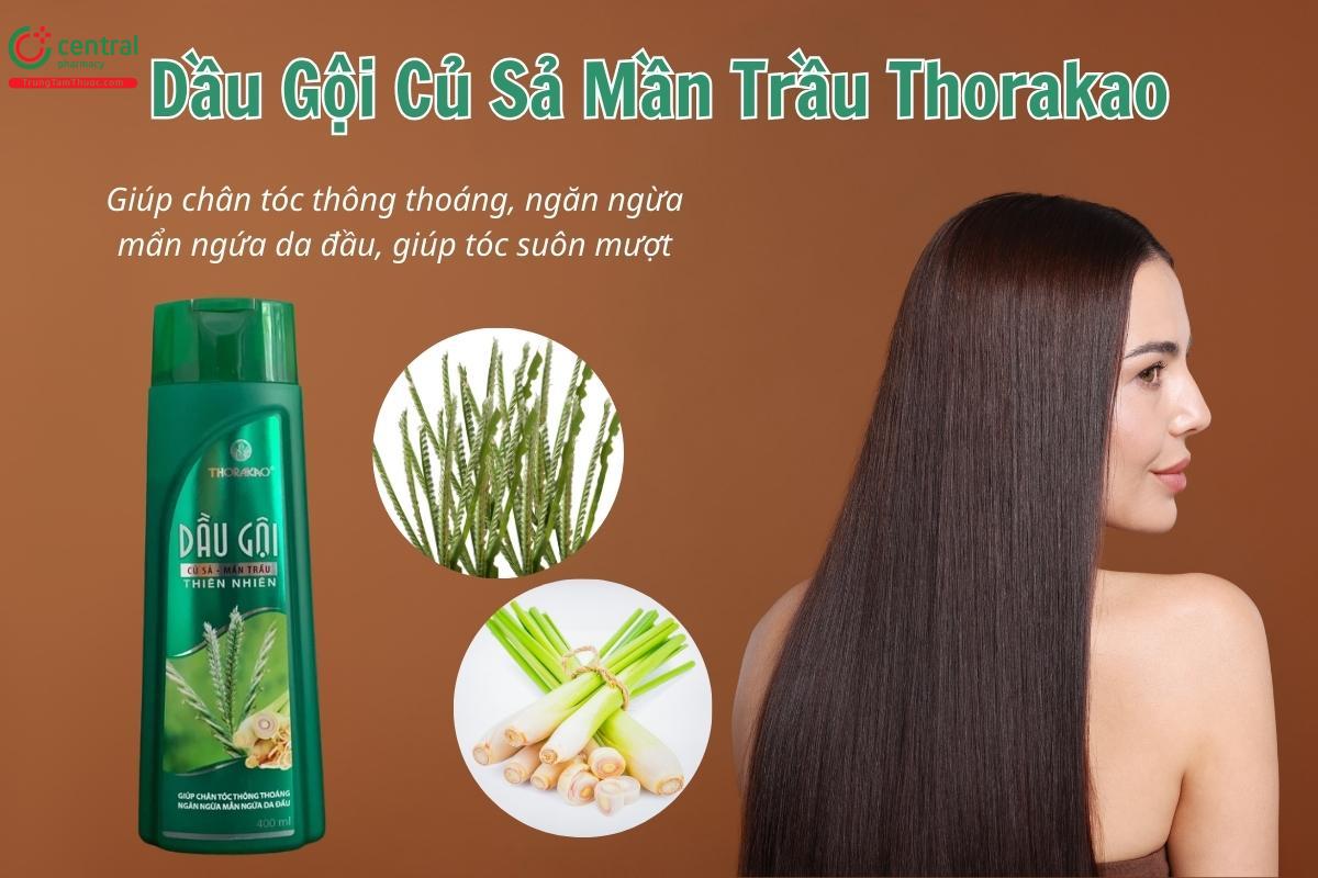 Nhờ có 2 thành phần chính là chiết xuất cỏ mần trầu và sả, Dầu gội Củ Sả Mần Trầu Thorakao có công dụng: