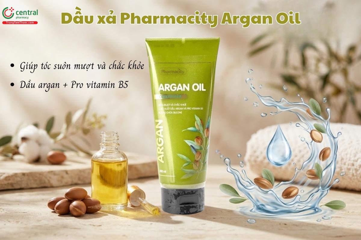 Dầu xả Pharmacity Argan Oil được PHA chế từ sự kết hợp của dầu Argan, dầu bơ, mầm lúa mì và Pro-vitamin B5, giúp cung cấp dưỡng chất cho tóc.