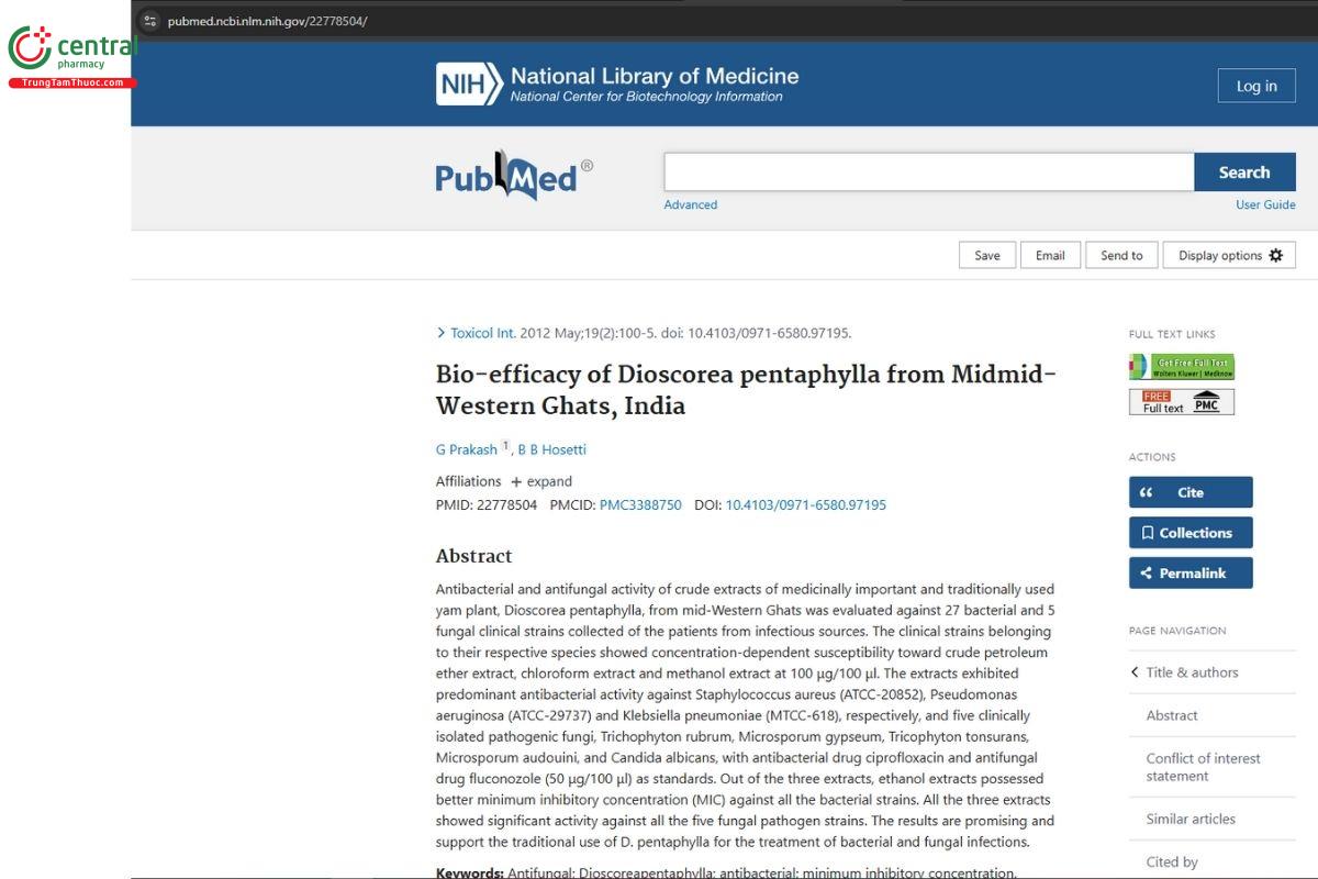 - Prakash G, Hosetti BB, (Đăng: Tháng 5 năm 2012), Bio-efficacy of Dioscorea pentaphylla from Midmid-Western Ghats, India, Pubmed. truy cập ngày 30 tháng 12 năm 2025.
