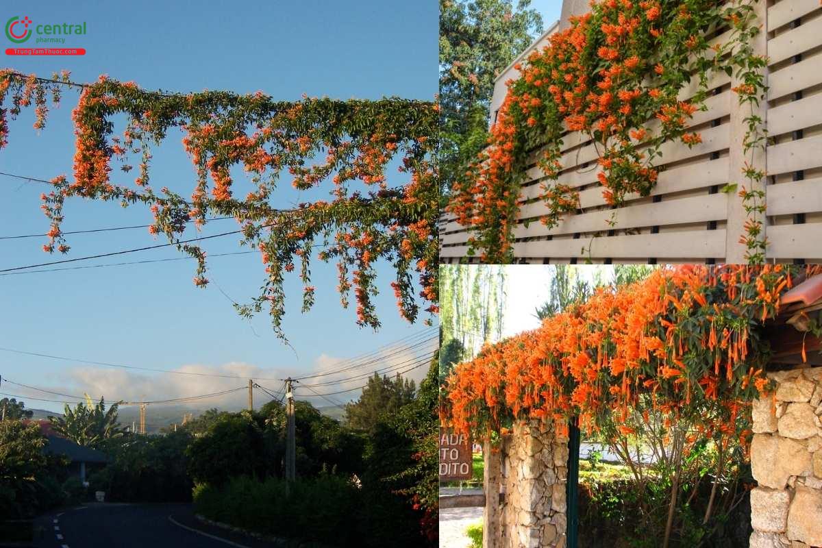Hoa chùm ớt thường được trồng cho leo hàng rào, vòm cổng hoặc giàn trang trí nhờ tốc độ sinh trưởng nhanh, chiều dài có thể đạt hàng chục mét và sắc hoa cam nổi bật, tạo điểm nhấn ấn tượng cho không gian cảnh quan.