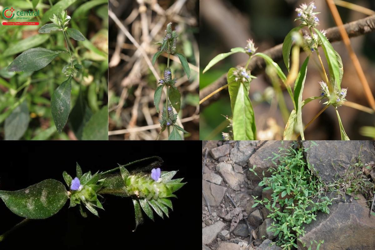 Hoa nhỏ, màu tím, xanh hoặc trắng; đài có 5 răng hình chỉ, phủ lông; tràng hoa chia thành hai môi, môi dưới có 3 thùy, mỗi thùy hơi tam giác. Nhị 2 gắn vào họng tràng, không có nhị lép; bao phấn 2 ô, ô dưới có cựa. Quả dạng nang dài, chứa hạt hình thấu kính với bề mặt ráp. Cây ra hoa và kết quả từ tháng 11 đến tháng 2.
