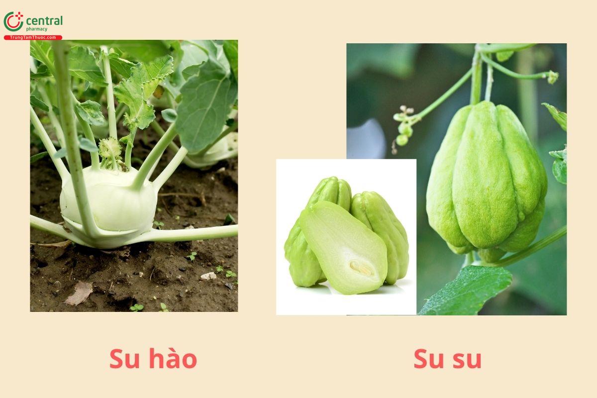 Nhiều người nhầm lẫn giữa su hào và su su do cả hai đều là rau củ quen thuộc trong bữa ăn hằng ngày, tuy nhiên đây là hai loại thực phẩm khác nhau. Su hào là phần thân phình to mọc trên mặt đất, có vị ngọt nhẹ, thường được dùng để nấu canh hoặc ăn sống và thuộc họ Cải. Trong khi đó, su su (chayote) là một loại quả mọc trên dây leo, có hình dáng gần giống quả lê màu xanh. Hình ảnh củ su hào và su su như dưới đây: