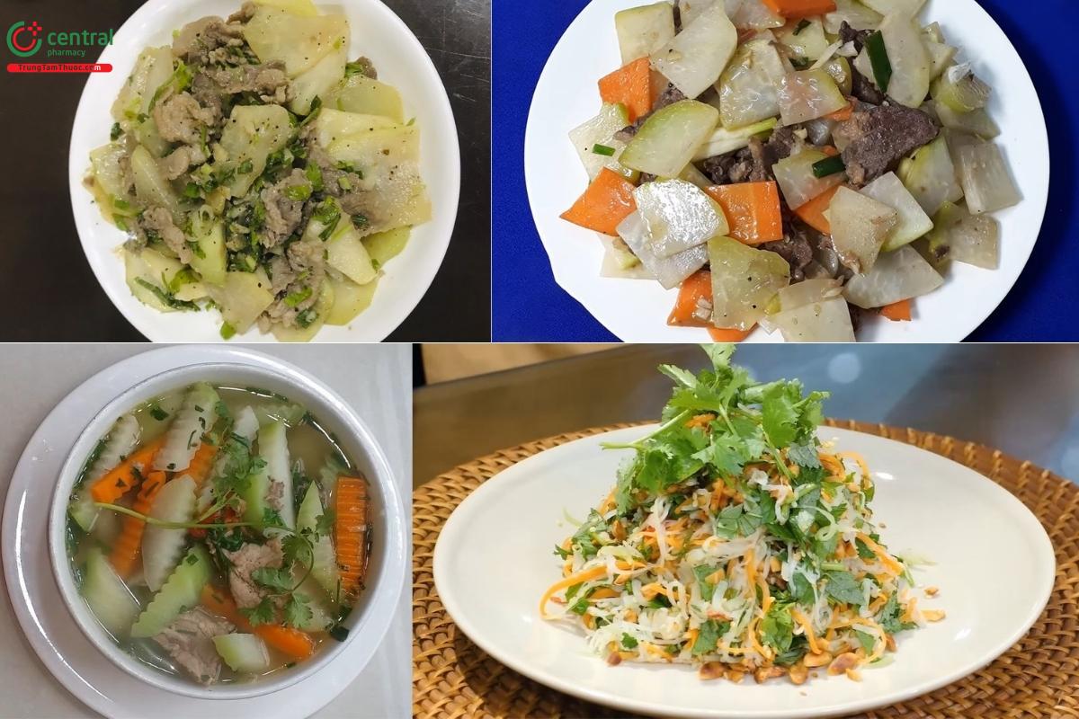 | Su hào xào | Su hào: 1 củ Thịt heo hoặc bò (có thể thay bằng trứng, tỏi): 100–150 g Hành, tỏi, gia vị thông dụng | Su hào gọt vỏ, rửa sạch, thái sợi hoặc thái lát mỏng. Thịt rửa sạch, thái mỏng, ướp nhẹ với gia vị. Phi thơm hành tỏi, cho thịt vào xào chín, sau đó cho su hào vào đảo nhanh tay. Nêm nếm vừa ăn, xào đến khi su hào chín tới, vẫn giữ độ giòn thì tắt bếp. |